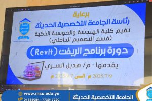 في أجواء أكاديمية ملؤها التميز والحماس، اختتم قسم هندسة التصميم الداخلي في الجامعة التخصصية الحديثة دورة تدريبية متميزة في برنامج الريفيت، أحد أبرز البرامج الهندسية في مجال التصميم والإخراج المعماري. وقد جاء هذا الختام تتويجاً لأيام من الجهد والعمل الدؤوب، تحت إشراف المدربة المهندسة هديل السري، التي أولت الطلبة جلّ اهتمامها لتزويدهم بالمهارات العملية الحديثة التي تعزز قدراتهم التنافسية في سوق العمل.