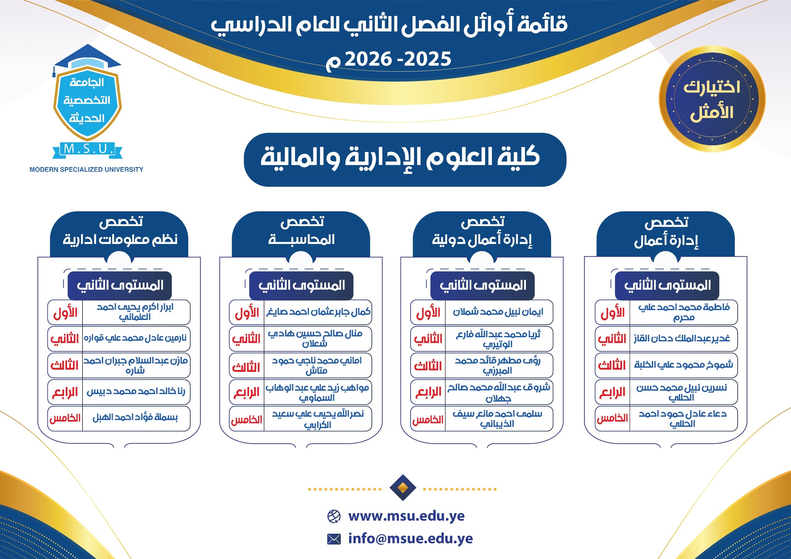 للمستويين الثاني والثالث لجميع الكليات والاقسام وتتمنى لهم دوام التميز.