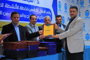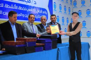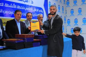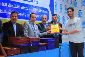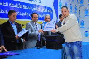 وشهدت الفعالية منح درع الجامعة لكلا من الأستاذ عبدالكريم الضحاك مدير عام الأنشطة الطلابية بوزارة التربية والتعليم والبحث العلمي – قطاع التعليم العالي، والدكتور خالد عمر؛ وفاءً وتقديرًا لدورهما الداعم، ومساندتهما المتواصلة للأنشطة الطلابية، وإسهامهما في تحفيز الطلبة وتمكينهم من إبراز قدراتهم الإبداعية والمنافسة المشرفة في مختلف المحافل.
