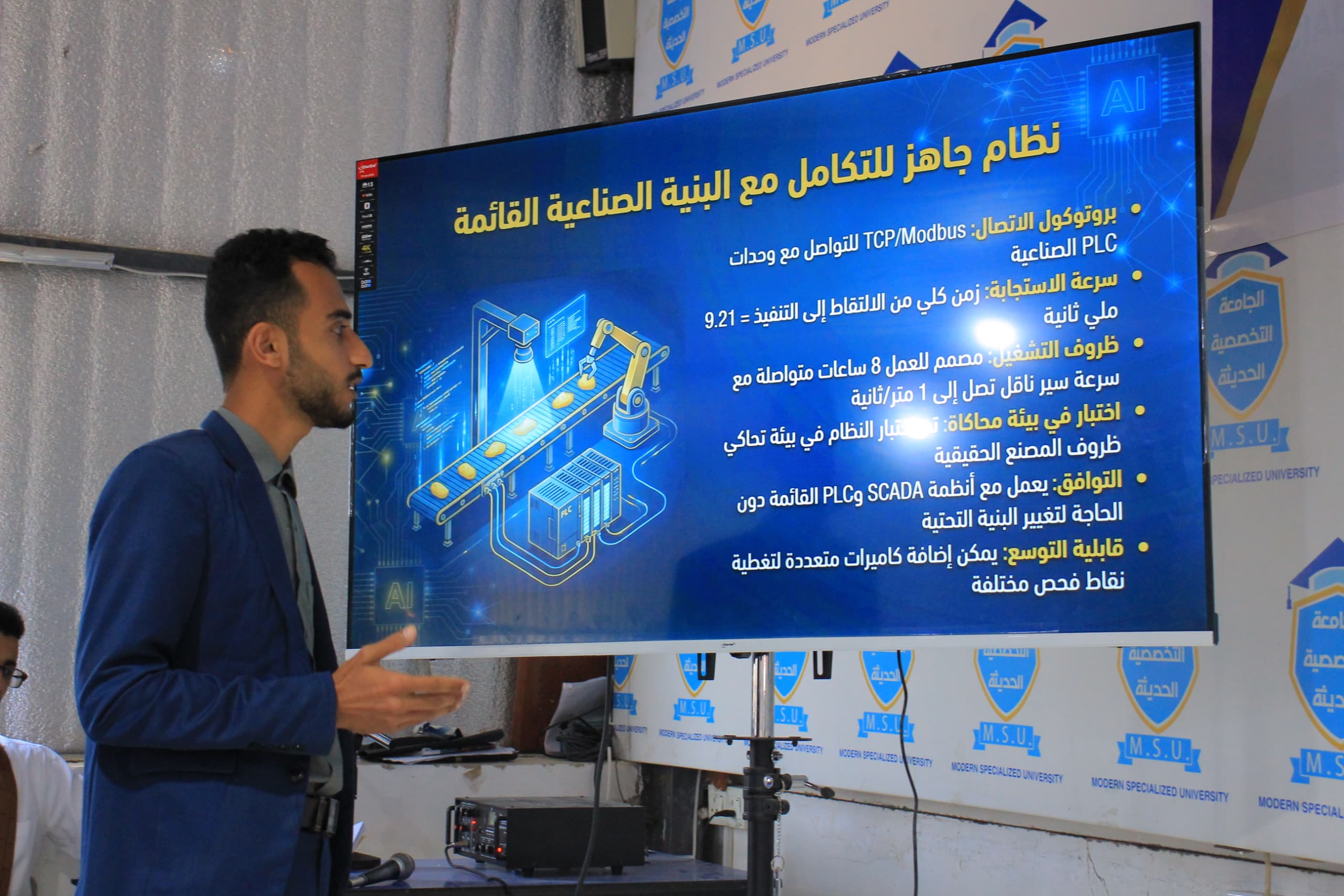 كما يقلل الجهد اليدوي ويتيح إمكانية التوثيق الرقمي الدقيق لمعدلات الجودة لكل دفعة إنتاجية. وقد اختُتم العرض بتجربة حية أثبتت قدرة النظام على معالجة 500 شريحة في الدقيقة بنسبة دقة وصلت إلى 97.5%، مما يمهد الطريق لنقلة نوعية في ضبط الجودة الصناعية الغذائية.
