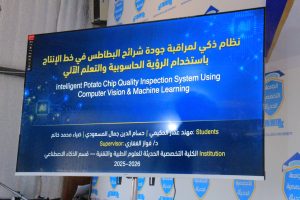 في الجلسة العلمية الأولى للمؤتمر، قدّم قسم الذكاء الاصطناعي مشروعاً مبتكراً وواعداً يحمل عنوان: “نظام ذكي لمراقبة جودة شرائح البطاطس في خطوط الإنتاج باستخدام الرؤية الحاسوبية والتعلم الآلي“.