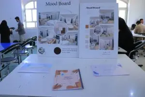 The students began their work by preparing a mood board for each project, which included the design concept, color palettes, materials, and aesthetic elements specific to various interior spaces, including bedrooms and living rooms, thereby helping to establish the visual identity of each design prior to the digital implementation phase.