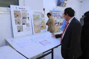 The presentations took place under the supervision of Engineer Hadeel Al-Sari, in the presence of the University President, Prof. Mujahid Al-Jabr, Department Chair Dr. Yahya Al-Bashari, and University Secretary General Mr. Safwan Al-Jabr, who praised the level of creativity and technical proficiency, emphasizing the importance of integrating technology and artificial intelligence into the educational process to prepare graduates capable of competing in the job market.